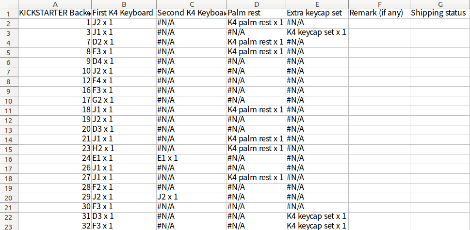 얼마 전 키크론(Keychron) K4 키보드가 킥스타터를 통해 펀딩을 진행했었습니다. 그리고 발송 관련 이메일이 왔는데 펀딩에 참여한 사람들의 키보드 옵션이 함께 포함된 엑셀 시트가 포함되어 있었습니다. 킥스타터 펀딩 참여 당시 어떤 스위치(게이트론, LK광축)와 축(적축, 청축, 갈축, 황축)를 선택할지 고민이 되었었는데요. 실제로 사람들은 어떤 키보드를 많이 주문했을까요? 판다스로 간단히 분석해보기로 했습니다. 여기에 언급된 순위는 키크론 사에서 펀딩 참여자에게 발송한 2019년 11월 경의 이메일 첨부 엑셀을 기반으로 한 것이니 모집단에 한계가 있는 점 참고해주세요.