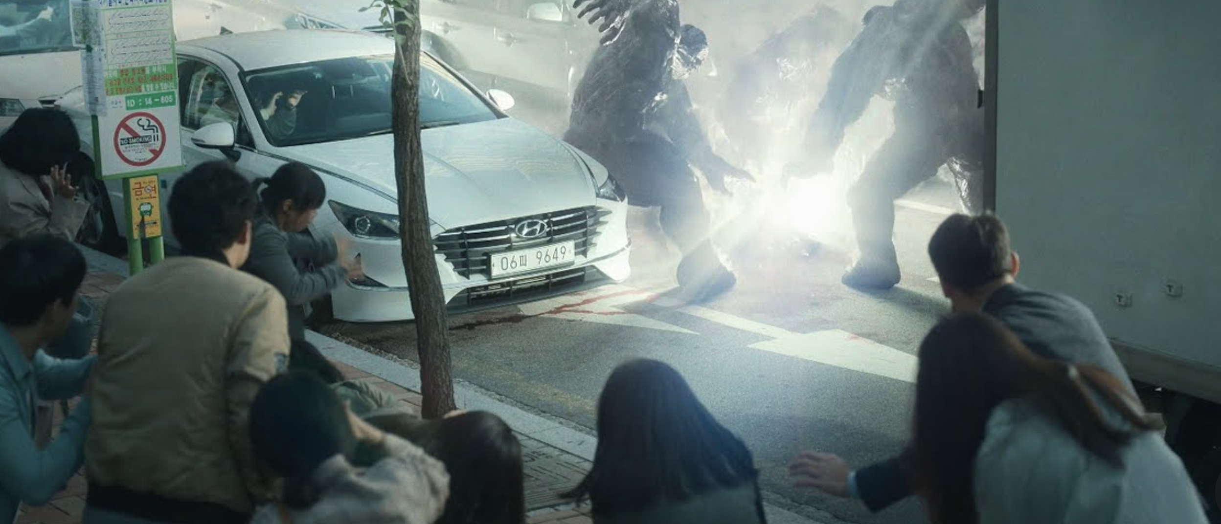 <지옥>은 이 단순하고도 지극히 일반적인 누구나 알고 있는, 그리고 단 한번도 틀린적 없는 “모든 인간은 죽는다”라는 전제에 기반한다. 단지 죽음의 순간을 미리 알게 되고, 그 과정이 폭력적이며, 지옥행을 고지받는 순간이 우리가 상상속에서 떠올렸던 무서운 악마의 모습을 하고 있다는 점이 다를 뿐이다. 제목을 <천국>으로 바꾸고, 고지를 받는 순간에 온화한 미소를 가진 천사가 나타나 금빛 가루를 뿌리며 사라진다면 어땠을까 하는 생각을 해본다.