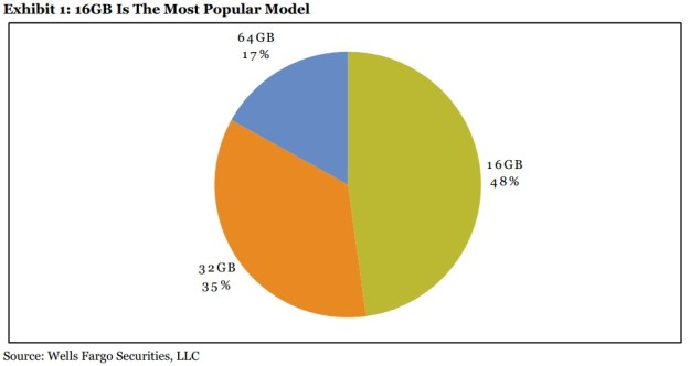 Well Fargo Securities, LLC가 2012년 아이폰5 출시 당시 발표한 통계에 따르면 48%의 점유율로 아이폰 16GB가 압도적으로 인기가 많았다. 아이폰6를 출시하기까지 2년이 걸렸는데 이 점유율이 크게 변할 것 같진 않다.