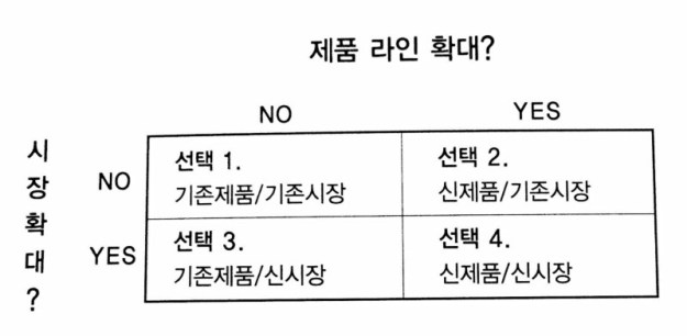 기업이 의사 결정할 수 있는 경우의 수를 표로 나타내고 각각의 교집합이 생기는 영역에서 가장 적합한 방법을 알 수 있게 도와준다