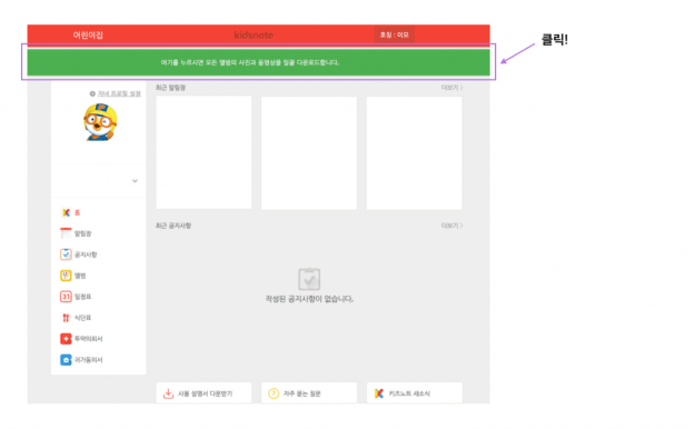 클릭 -> 키즈노트 사진/동영상 다운로드 내려받기