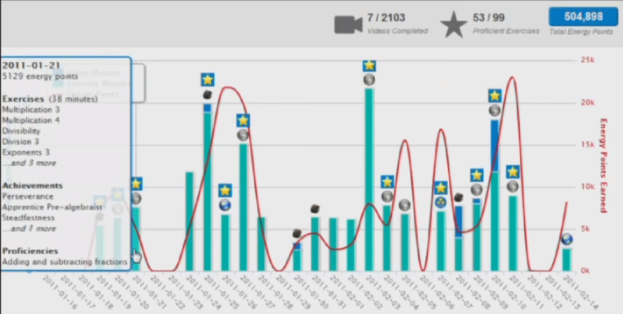 어쩌면, 만약에 그러지 않았다면, 아이들이 개념을 더 이해하는데 시간을 쓰거나 개념을 응용하는데 시간을 쓰는 등 각자가 부족한 부분을 보충받을 기회를 누렸다면 많은 아이들의 인생이 달라지지 않았을까. 어떤 아이가 어느 부분이 부족한지 본인 스스로 알아채기는 쉬운 일이 아니다. 수십 명의 학생을 맡아야 하는 선생님이 학생 한 명 한 명을 제대로 알긴 사실 상 불가능하다. 하지만 데이터는 다르다. 다양한 시각에서 개개인에게 필요한 학습 가이드를 제공할 수 있으며 맞춤형 반복 학습이 가능하다. 이런 초기 단계의 효과는 인강(인터넷 강의)을 통해 익히 경험한 적이 있다. 칸아카데미는 이런 효과와 노력의 진보된 모습이다.