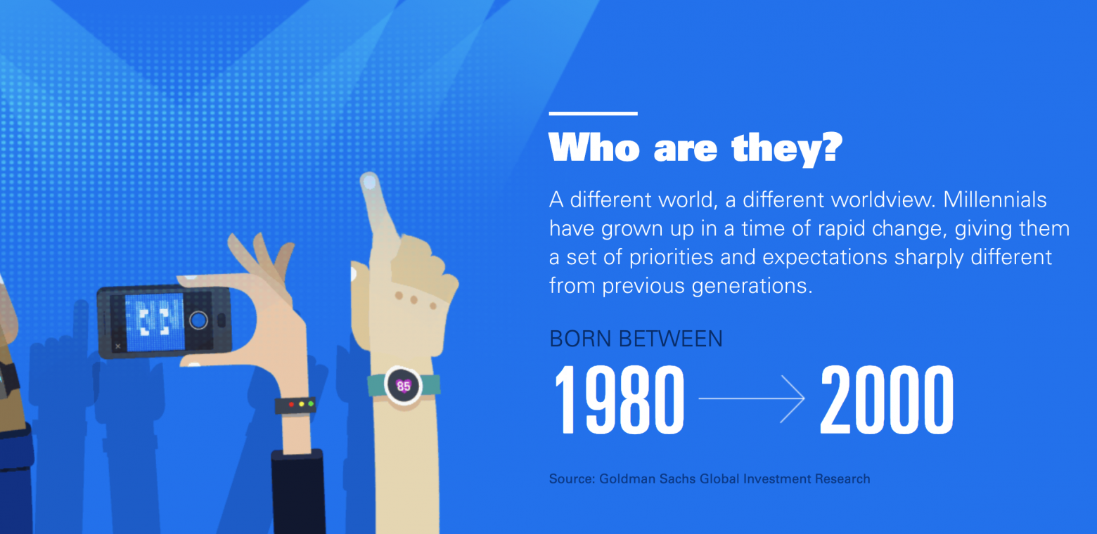 1980년에서 2000년 사이에 태어난 세대를 밀레니얼(Millennials) 세대라 부른다. 미국에서 이 밀레니얼 세대는 베이비붐 세대보다 더 많은 분포를 차지한다. 이들이 일하고 쓰는 주요 세대로 등장하면서 경제에 큰 영향을 주고 있다. 골드만 삭스의 이 문서는 이들의 특성을 잘 보여준다.