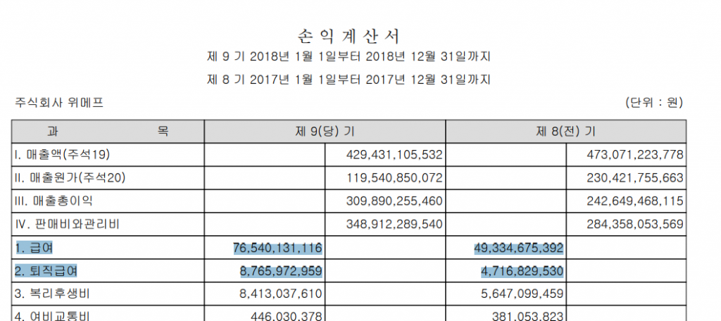 - 판관비는 2017년에 비해 20% 이상 뛰었다.